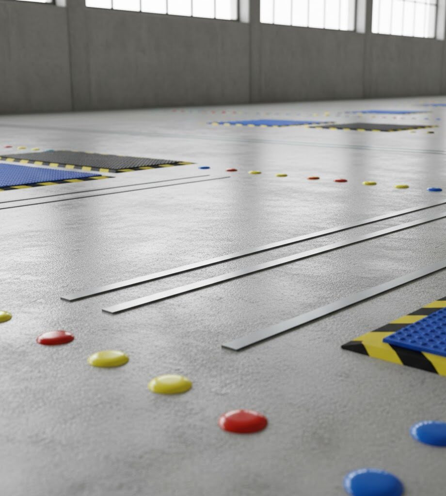 Stalowe listwy prowadzące i pinezki antypoślizgowe